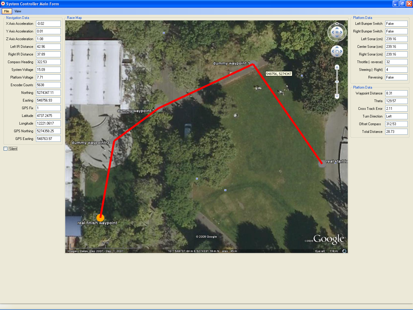 Google Earth (earth.google.com) is an excellent resource for highly accurate position readings on start/destination points and intermediate bonus waypoints. When choosing points, consider features like sidewalk corners, buildings and playground equipment to make cone placement more accurate. Recording latitudes and longitudes that are accurate with respect to each other is more important than recording latitudes and longitudes that are accurate with respect to surveyed points. In other words, it's more important a builder knows the distance and bearing between points than it is for them to accurately navigate to a surveyed location.